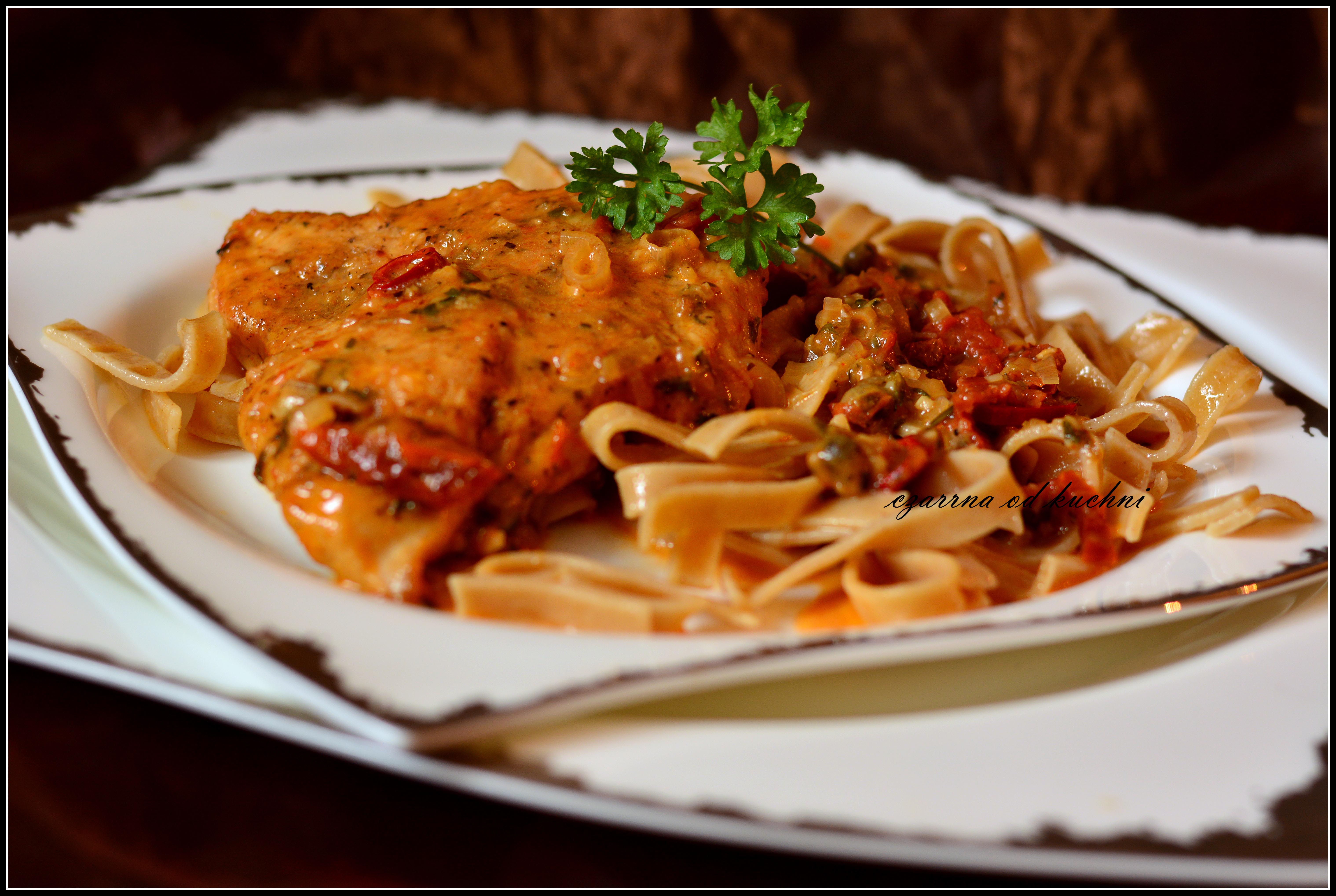 Składniki: 200 g makaronu Lubella wstążki pełne ziarno 4 kotlety z piersi…
