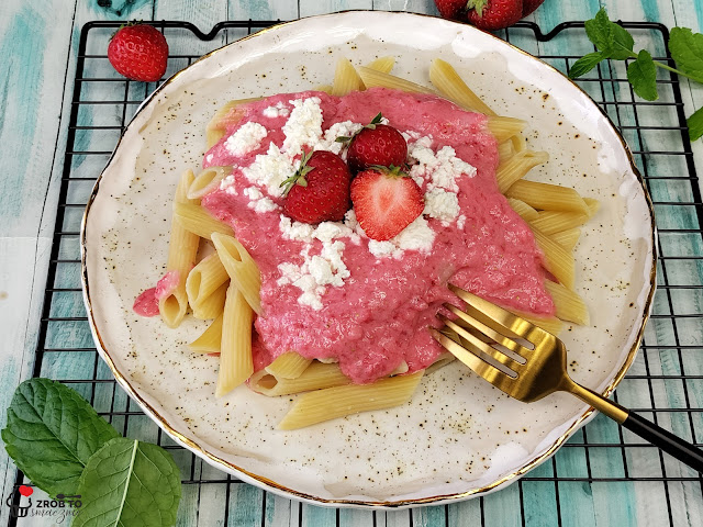 W sezonie truskawkowym makaron z serem i truskawkami to obowiązkowe danie w moim domu. Jest to dla mnie wspomnienie dzieciństwa i wakacji. Uwielbiałam za dzieciaka i uwielbiam do dziś. Tak naprawdę traktowałam ten przysmak zawsze jako deser, jednak w upalne dni będzie równie dobrym, lekkim i szybkim obiadem. Na przygotowanie