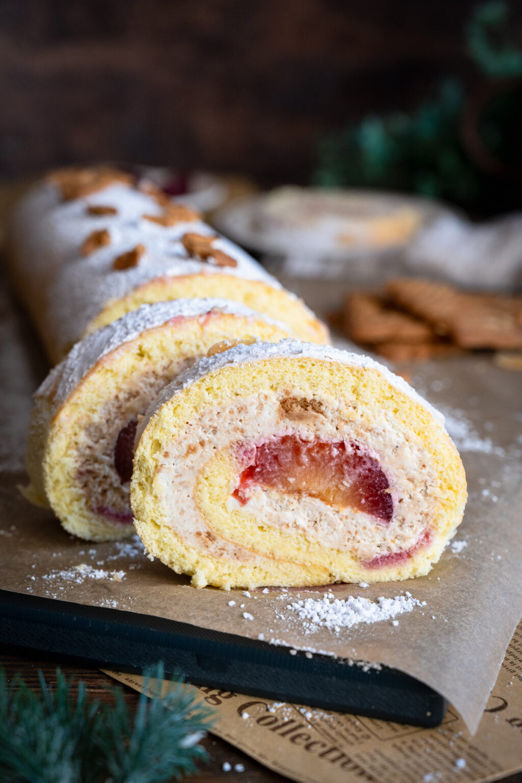 Rolada biszkoptowa z kremem spekulatius i śliwkami