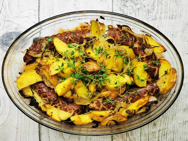 Kiełbaska pieczona z ziemniakami Każdy z nas ma czasem chwile słodkiego lenistwa.…