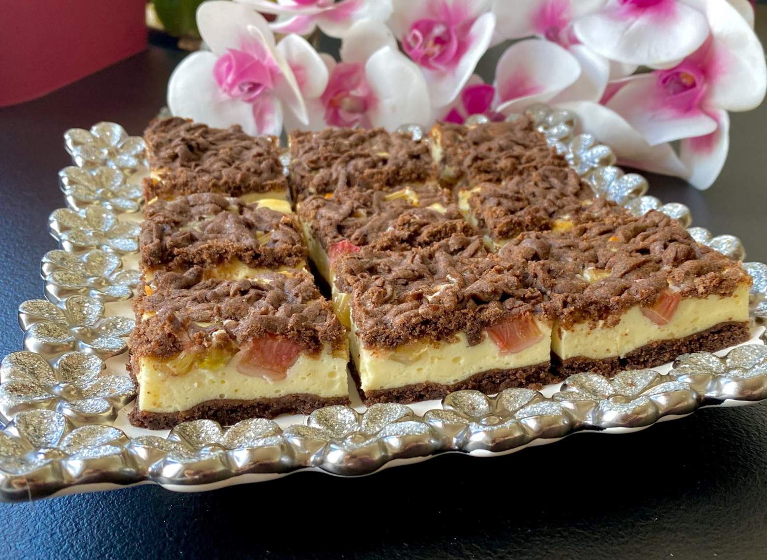Sernik z rabarbarem Kremowy sernik w kruchym cieście kakaowym z dodatkiem rabarbaru.…
