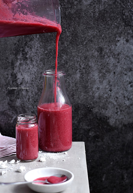 Smoothie warzywno-owocowe, które swój nieziemski intensywny kolor zawdzięcza burakowi. Przygotowanie zajmuje 2…