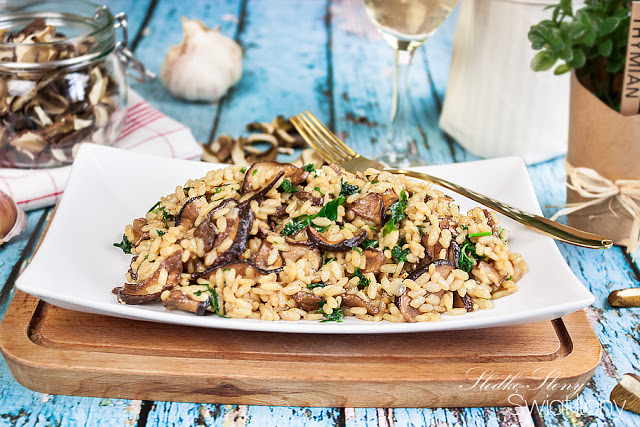 Cudowne, aksamitne i idealnie kremowe risotto z suszonymi grzybami, natką pietruszki i…