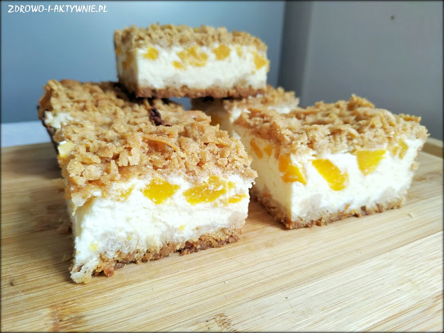 Puszysta masa serowa i słodka brzoskwinia z bezą pod maślaną kruszonką. Przygotowanie:…