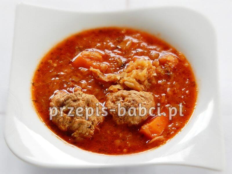 Przepis babci Joli na smaczny kapuśniak z młodej kapusty. Moja zupa jest na dobrym wywarze, który gotuję na troszkę chudszym rosole, a później dodaje jeszcze gałeczki z mięsa mielonego. Oczywiście gałeczki z mięsa można pominąć, ale w zamian do zupy oprócz udka można dorzucić kawałek indyka. Możemy też zupę ugotować
