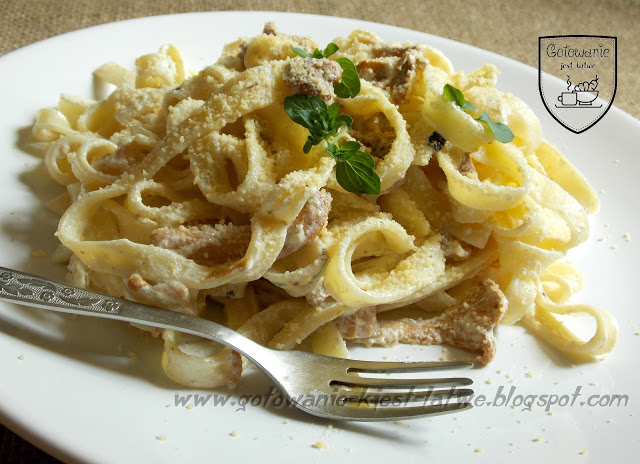 1 op makaronu tagliatelle Malma200 g kurek1 cebula300 ml śmietany 22%2 łyżki…