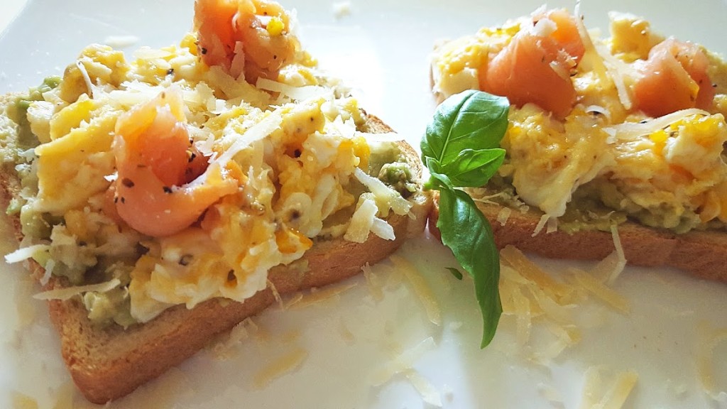 Szybkie i proste, ale niecodzienne tosty z jajecznicą, awokado i wędzonym łososiem.…