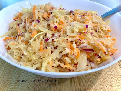 Sałatka, na którą przepis znajdziesz poniżej, składa się z następujących składników: tofu lub kurczak podsmażony z przyprawą do gyrosa, świeże ogórki, czerwona cebula, ser feta,