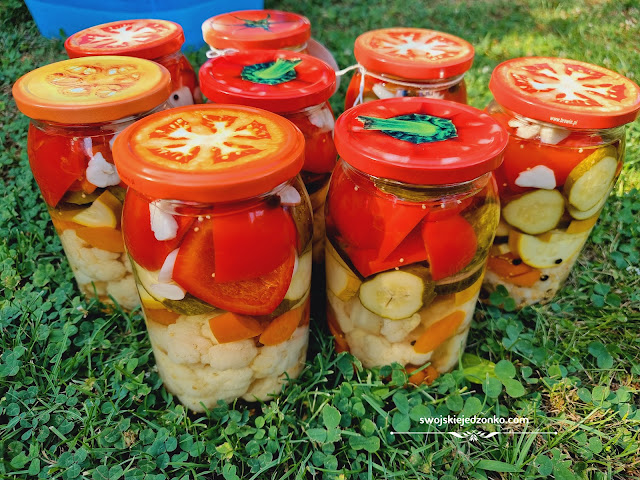 Pyszne kolorowe pikle, pięknie wyglądają i pysznie smakują. Możecie dowolnie dobierać je pod swój smak i za każdym razem wyjdzie wam trochę inna kompozycja. Uwielbiam takie słoiki, potem zimą otwieramy i w jednym mamy wszystko. Polecam