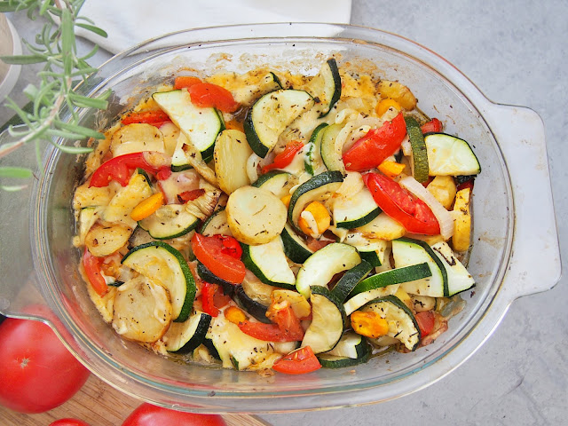 Szperając w sieci niemal nieustannie natykam się na pytania co zrobić z cukinii – przyznam się szczerze, że osobiście najbardziej lubię leczo, placki, a ostatnio pokochałam także frytki z cukinii. Na blogu znajdziecie jeszcze kilka pysznych pomysłów na to warzywo, a dziś zapraszam na moją wersję Briam czyli