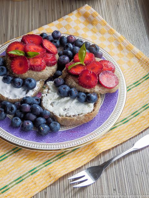 Angielskie kokosowo-kawowe muffiny z kasztanami podane z piankowym kremem, ricottą, truskawkami i…