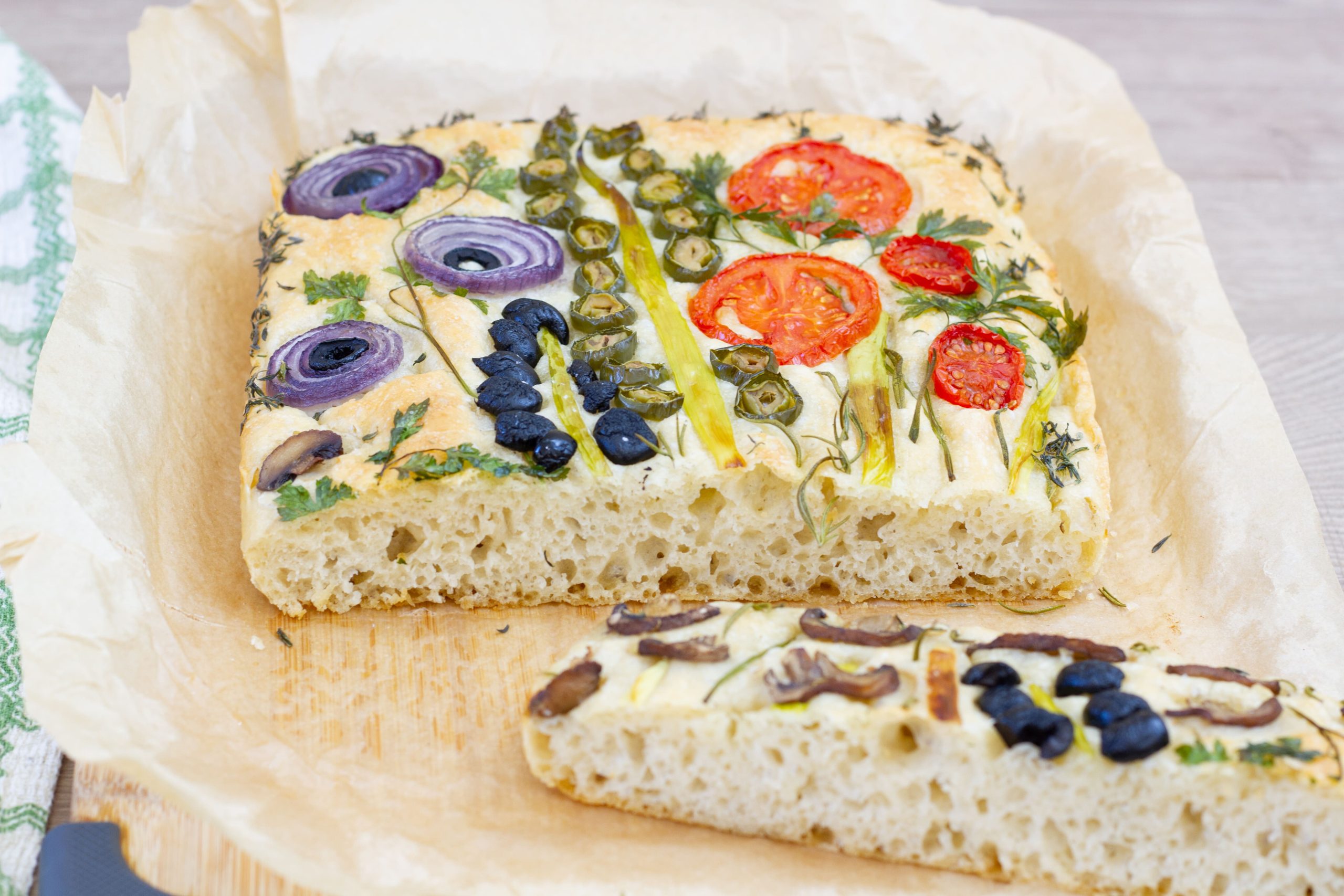 Włoska focaccia w nieco innym wydaniu, gdyż wyglądająca niemalże jak obraz. Przygotowana…