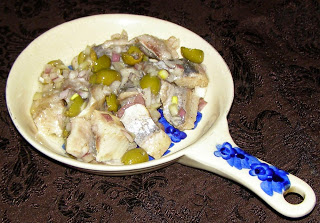 Składniki: filety z matiasa marynowane w oleju 5 sztuk, oliwki zielone 10…