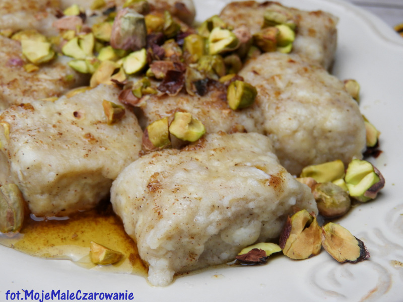 Pierogi leniwe z miodem i pistacjami