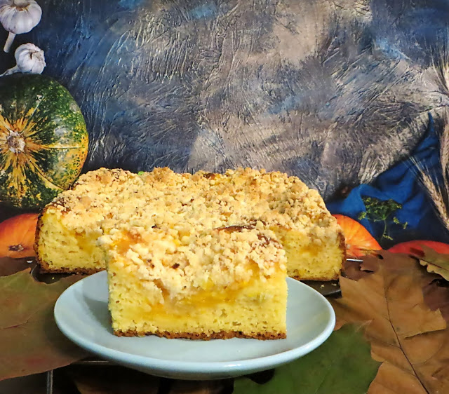 Placek bez wtrabiania, ciasto mieszamy łyżką. W cieście mamy puree dyniowe. Ale…
