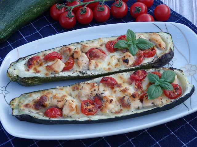 Cukinia faszerowana kurczakiem, pomidorkami i mozzarellą