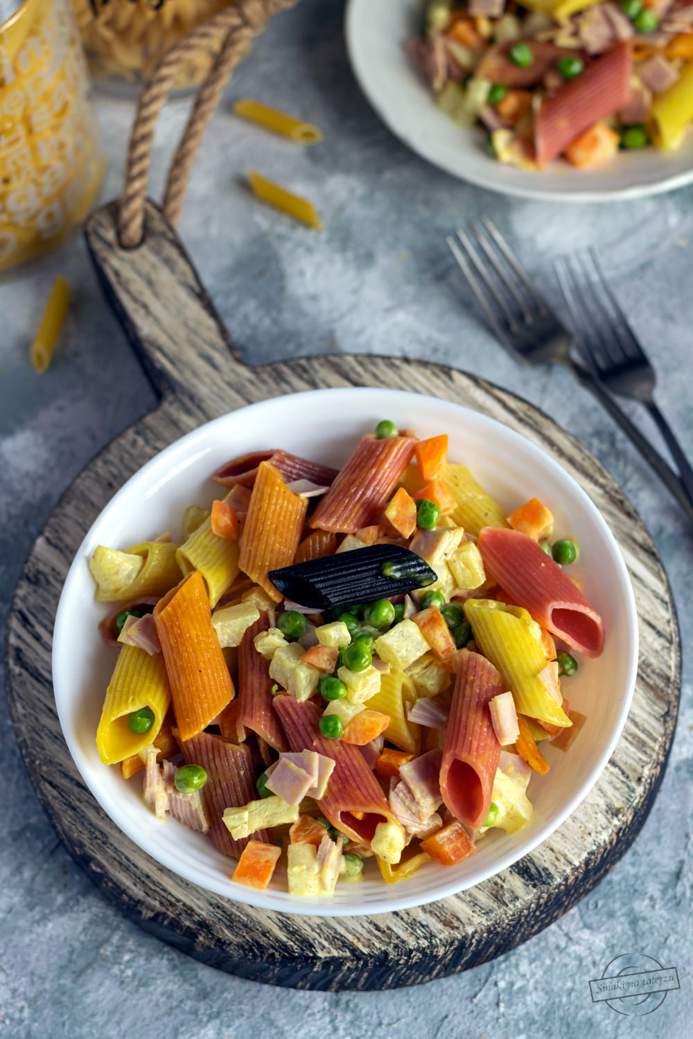Smaczna i niezwykle kolorowa sałatka makaronowa z marchewką, groszkiem, szynką oraz ananasem.…