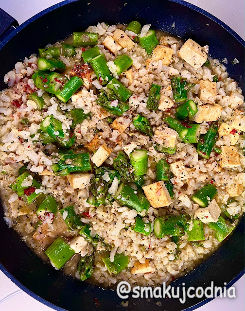 450 g ryżu kalafiorowego (u mnie gotowy w wersji śródziemnomorskiej, natomiast możecie zrobić go sami),1