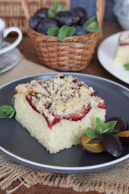 Śliwki myjemy, usuwamy pestki. Mąkę mieszamy z proszkiem do pieczenia. W osobnym naczyniu mieszamy jajka z kefirem, olejem, cukrem oraz ekstraktem.