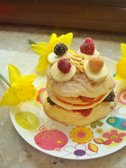Dziś placki w wersji orkiszowej z konfiturą, owocami, prażonymi migdałami i cynamonowym…