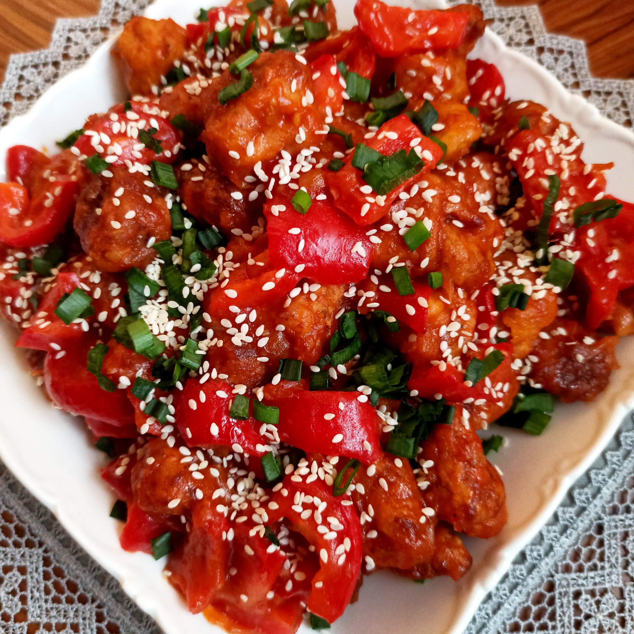 Pyszny wieprzowina w sosie słodko-kwaśnym to doskonałe w smaku danie składające się z kawałków schabu smażonych na głębokim oleju, a następnie połączonych z aromatycznym i wyrazistym sosem słodko-kwaśnym. Bardzo polecam! 🙂