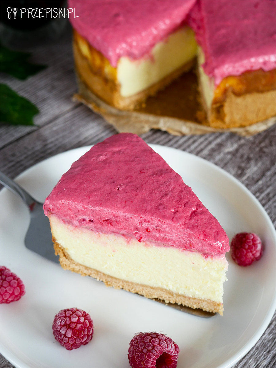 Sernik składa się z ciasteczkowego spodu, rozpływającej się w ustach masy serowej oraz warstwy kwaśno-słodkiego musu malinowego. Całość idealnie się komponuje