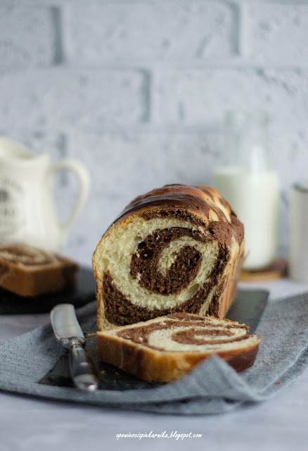 Bardzo smaczna, puszysta, lekko słodka drożdżówka ( można nawet nazwać ją chlebkiem ), o niezwykle uroczym wyglądzie :). Prawda, że fajnie się prezentuje? O szczegółach uzyskania takiego efektu dowiecie się oczywiście z przepisu, ale zapewniam, że jest bardzo prosta w wykonaniu. I chociaż ciasto nie wychodzi duże,