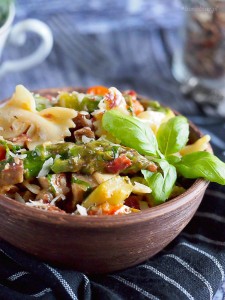 Makaron z karkówką, szparagami i grzybami / Pork sparagus and mushroom pasta