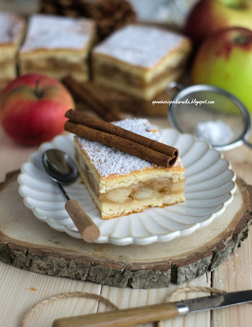 Pyszny jabłecznik, wykonany na cieście, z którym bardzo lubię pracować, krucho-drożdżowe bowiem jest szybkie w przygotowaniu, nie wymaga wyrastania i długo zachowuje świeżość. I mogę chyba nawet śmiało rzec, że zawsze się udaje :). Jabłecznik ten, to bardzo proste ciasto, niewyszukane, ale jakże wyborne! Użyłam tutaj odmiany jabłek szara