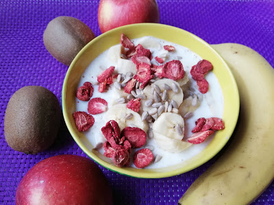 Owsianka z bananem i truskawkami liofilizowanymi