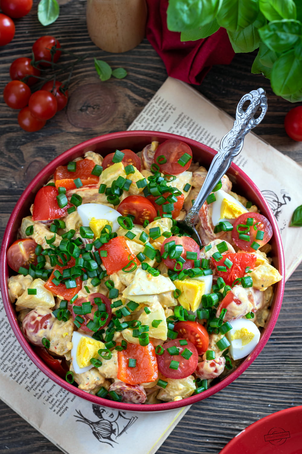 Na blogu jest już kilka przepisów na sałatki ziemniaczane. Większość z nich to takie tradycyjne połączenia – z ogórkiem kiszonym/konserwowym czy rzodkiewką. Pyszne, ale jednak ostatnio miałam ochotę na coś innego.