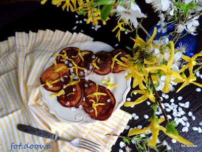 Placuszki daktylowe z kwiatami forsycji i mirabelki