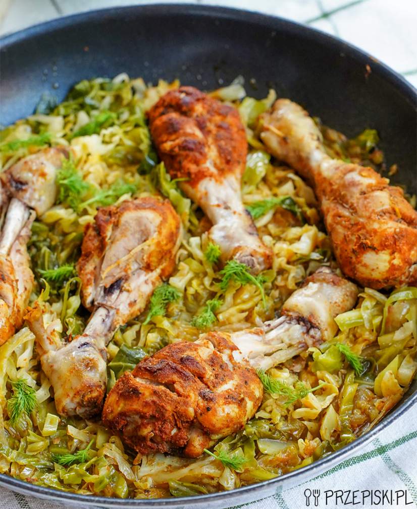 Soczyste pałki kurczaka duszone z aromatyczną kapustą, tworzą harmonijną i pełną smaku…