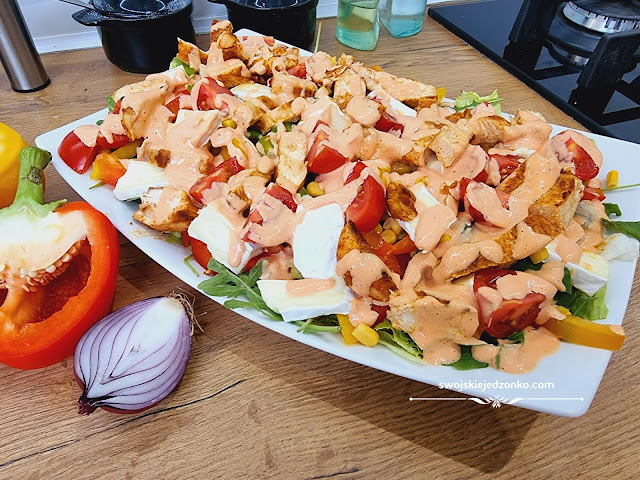 Sałatka z kurczakiem, camembertem i sosem tysiąca wysp