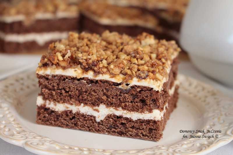 czekoladowe ciasto z kremem budyniowym i orzechami
