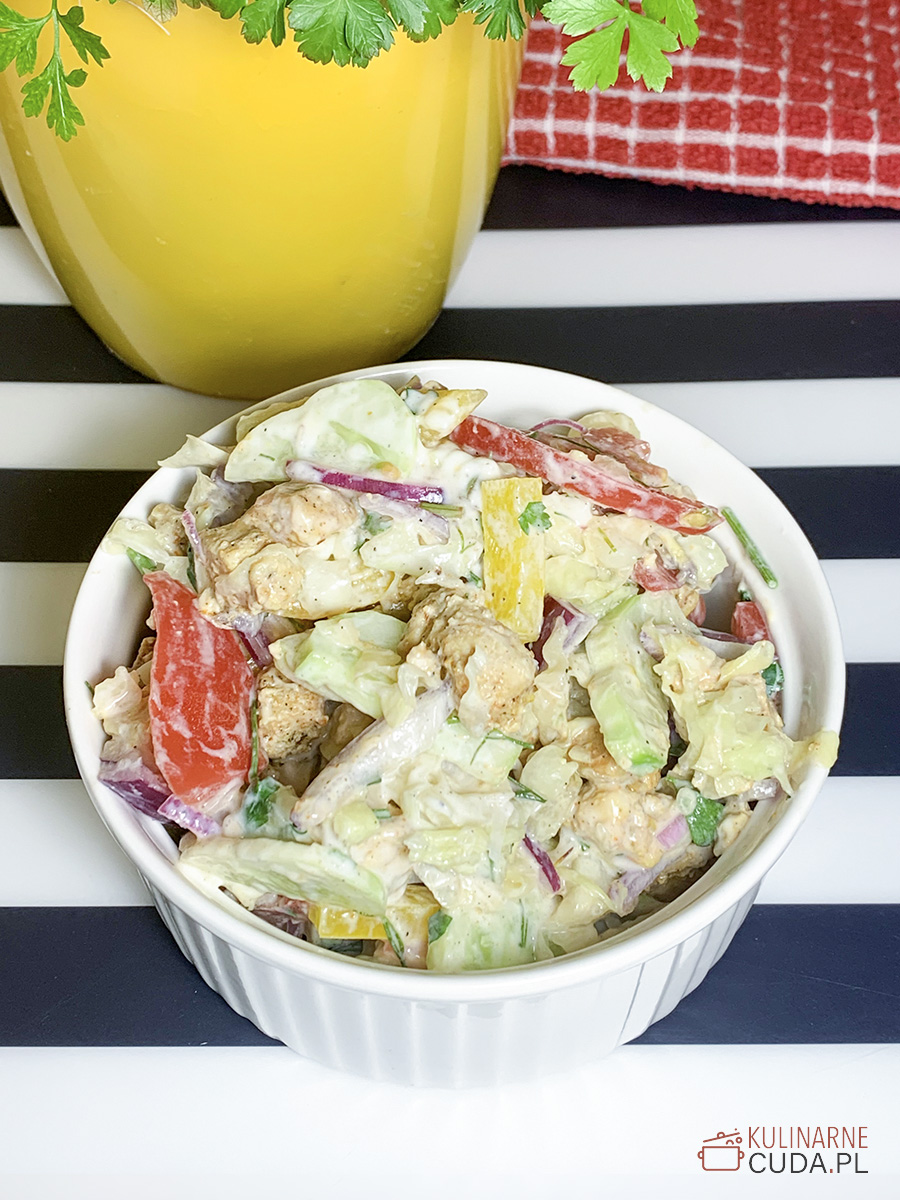 Super smaczna i łatwa do zrobienia sałatka kebab-gyros. Idealna na imprezę, rodzinne spotkania, a nawet na święta.