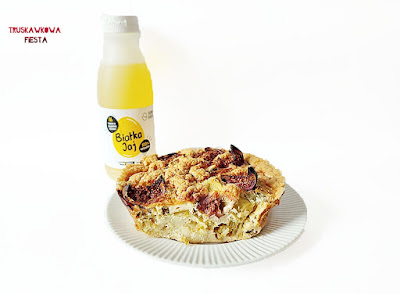 Składniki:2 jaja100 ml białek jaj50 g erytrytolu10 ml oleju rzepakowego50 g mąki ryżowej1/4 łyżeczki proszku do pieczenia240 g obranego rabarbaru60 g świeżej figiaromat