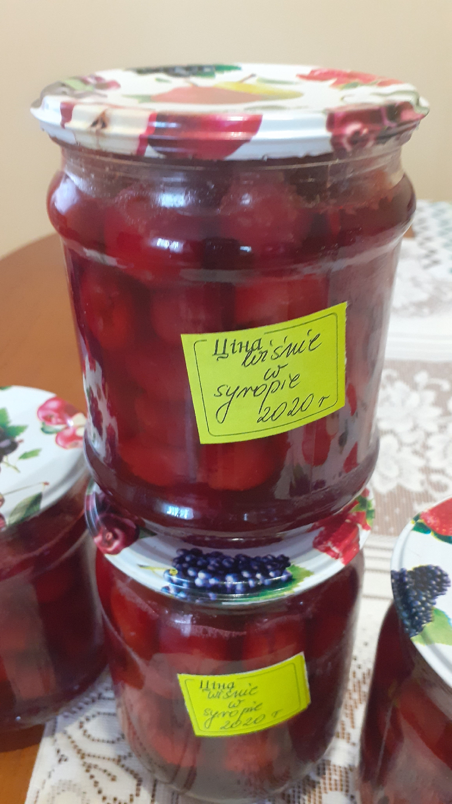 WIŚNIE W SYROPIE 5. Wkładamy do garnka słoiki z wiśniami. Słoiki nie…