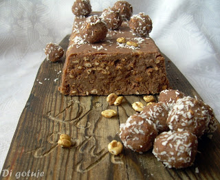 Blok/kulki czekoladowe z kokosem i prażoną pszenicą (z mleka granulowanego)