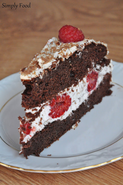 Moooocno czekoladowy tort z masą na bazie serka mascarpone i bitej śmietany…