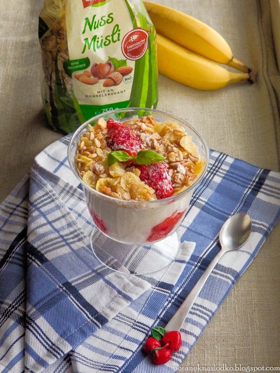 pudding waniliowy z prażonym jabłkiem z cynamonem i orzeszkami sojowymivanilla pudding with…