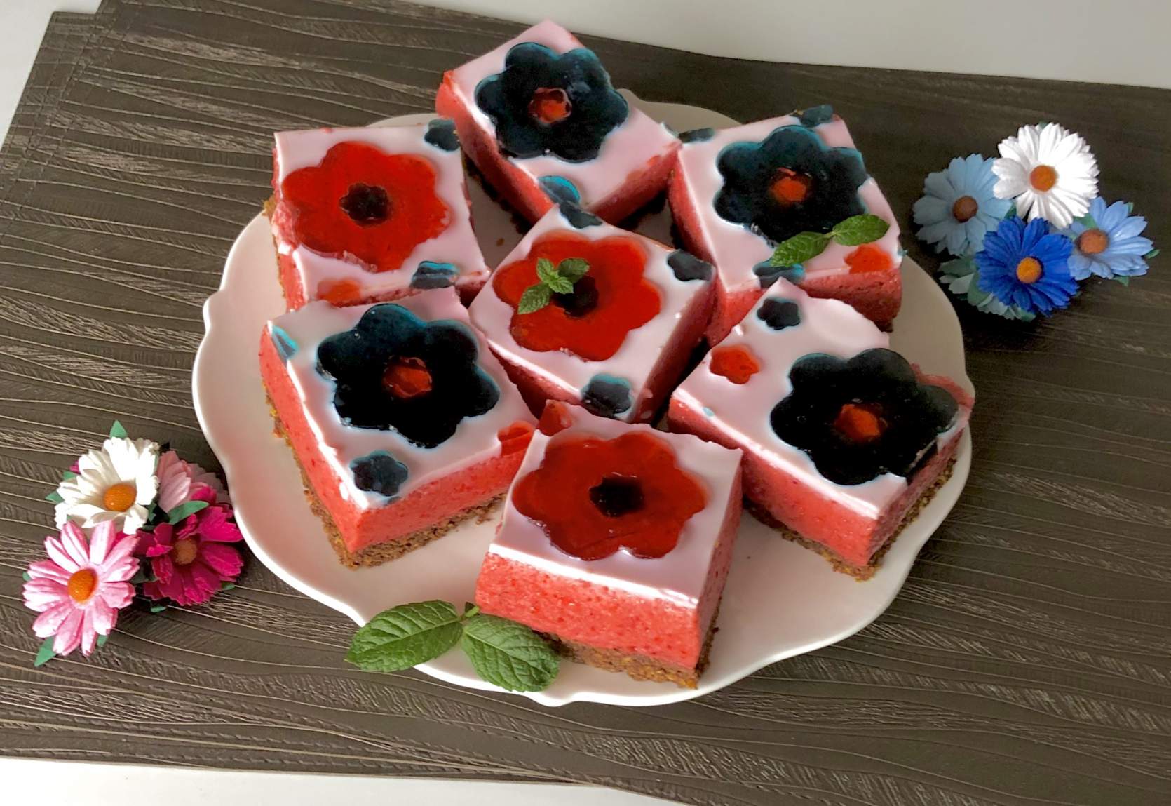 Kwiatek – proste i przepyszne ciasto bez pieczenia! Jogurtowo-truskawkowa pianka na chrupiącym…