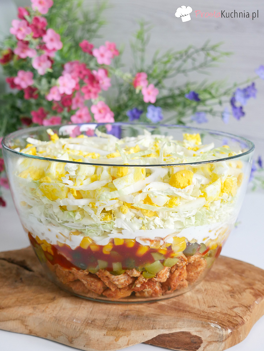 Pyszna sałatka warstwowa, która nie tylko pięknie prezentuje się na stole ale także wyśmienicie smakuje.