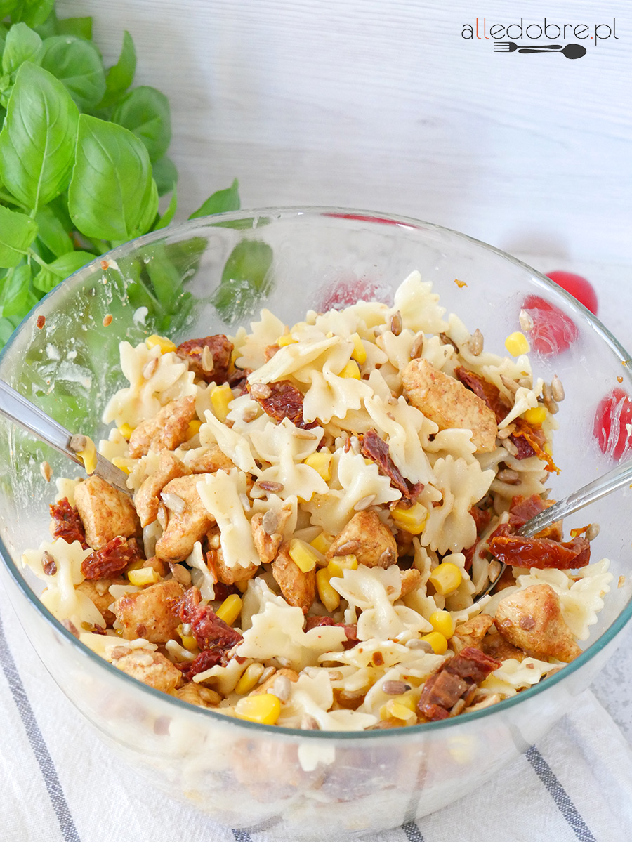Ta sałatka z kurczakiem to pyszna i sycąca propozycja zarówno na obiad, czy kolację, jak i na imprezę lub spotkanie rodzinne. Składa się z prostych składników, które połączone ze sobą tworzą pyszne i pożywne danie.