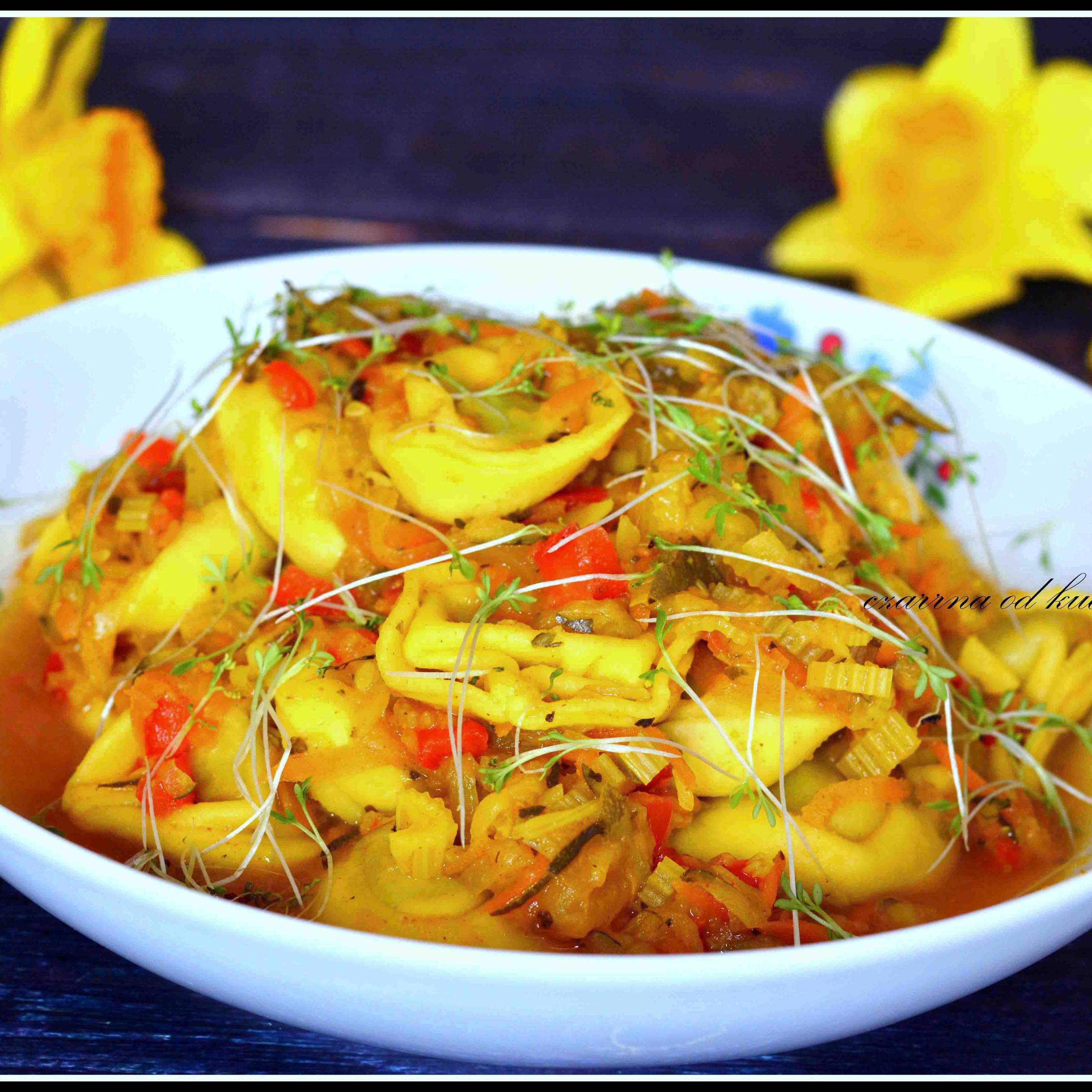 Składniki: 1 opakowanie świeżego makaronu tortellini, u mnie z ricottą i szpinakiem…