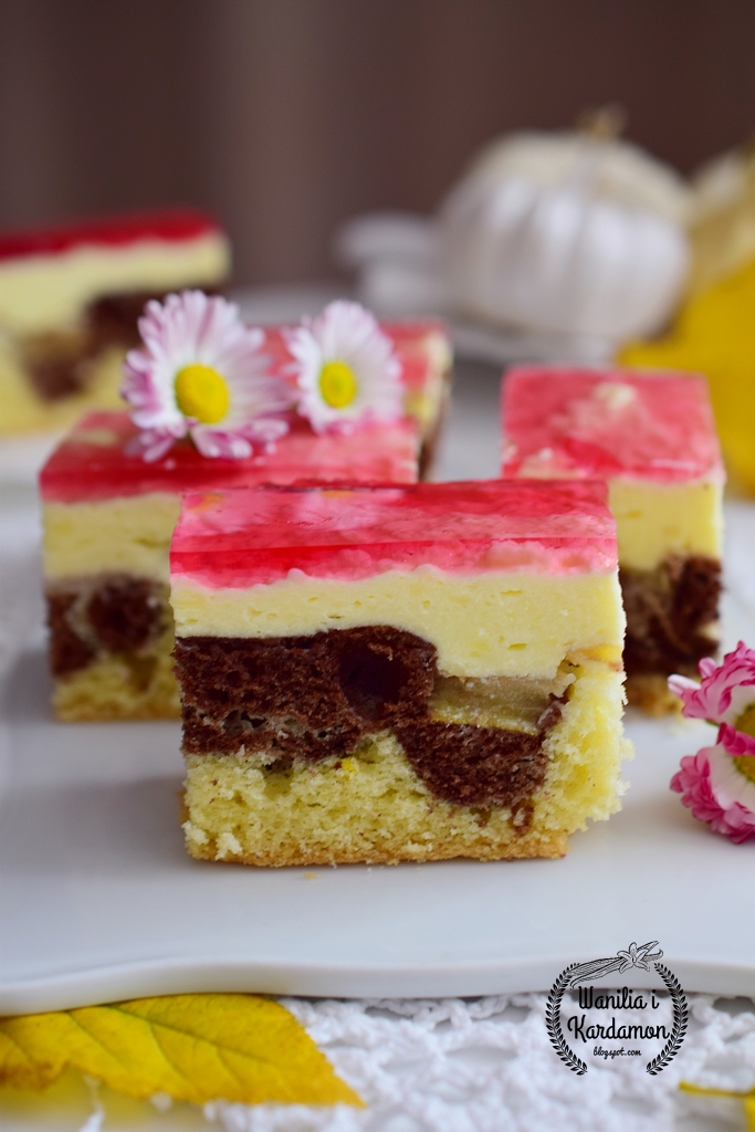 To ciasto to klasyka. W moim domu gościło już w różnym wydaniu , najlepiej smakuje z galaretką na wierzchu lub po prostu czekoladową polewą. Jest nieskomplikowane i dość szybkie do przygotowania. Posmakuje tym który nie lubią przesadnie kremowych ciast.