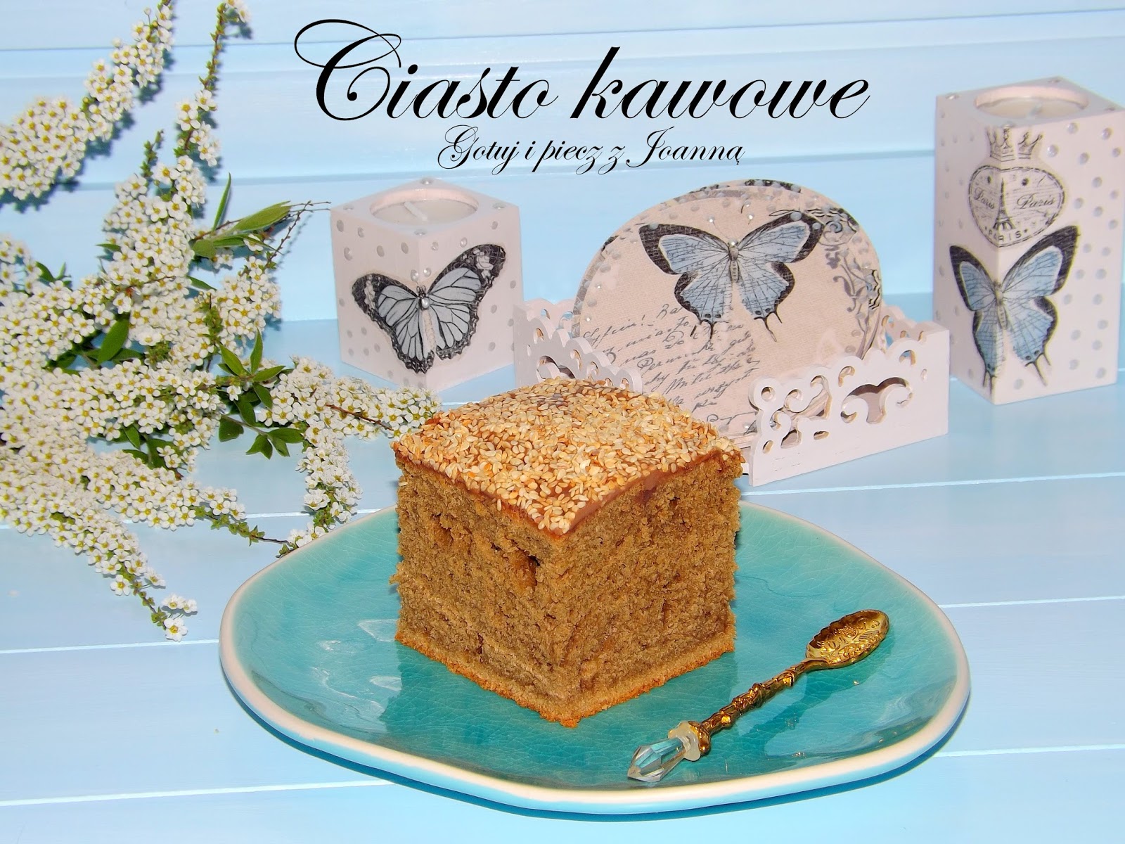 Ciasto kawowe z polewą czekoladową i prażonym sezamem