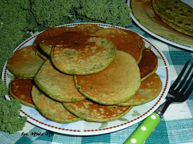 Jajka (2 duże szt) mieszamy z kefirem (około 400 ml) za pomocą trzepaczki. Składniki mogą być w temperaturze pokojowej, ale przyznam, że robiłam je również