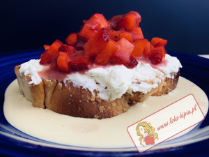 wino różowe półwytrawne – 70 ml,masło – 30 g,dżem truskawkowy z wanilią – 40 g,