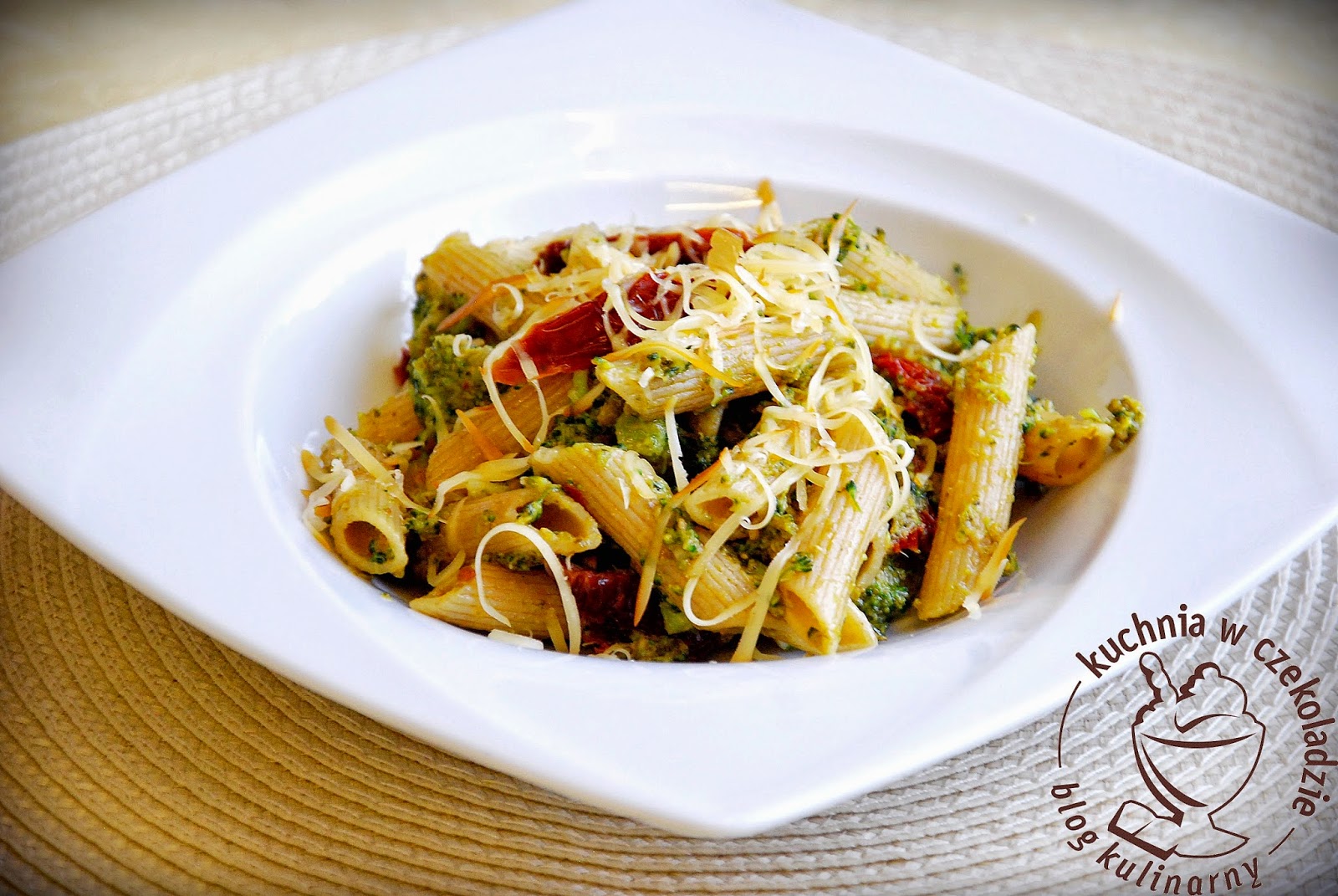 Makaron pełnoziarnisty z sosem brokułowym